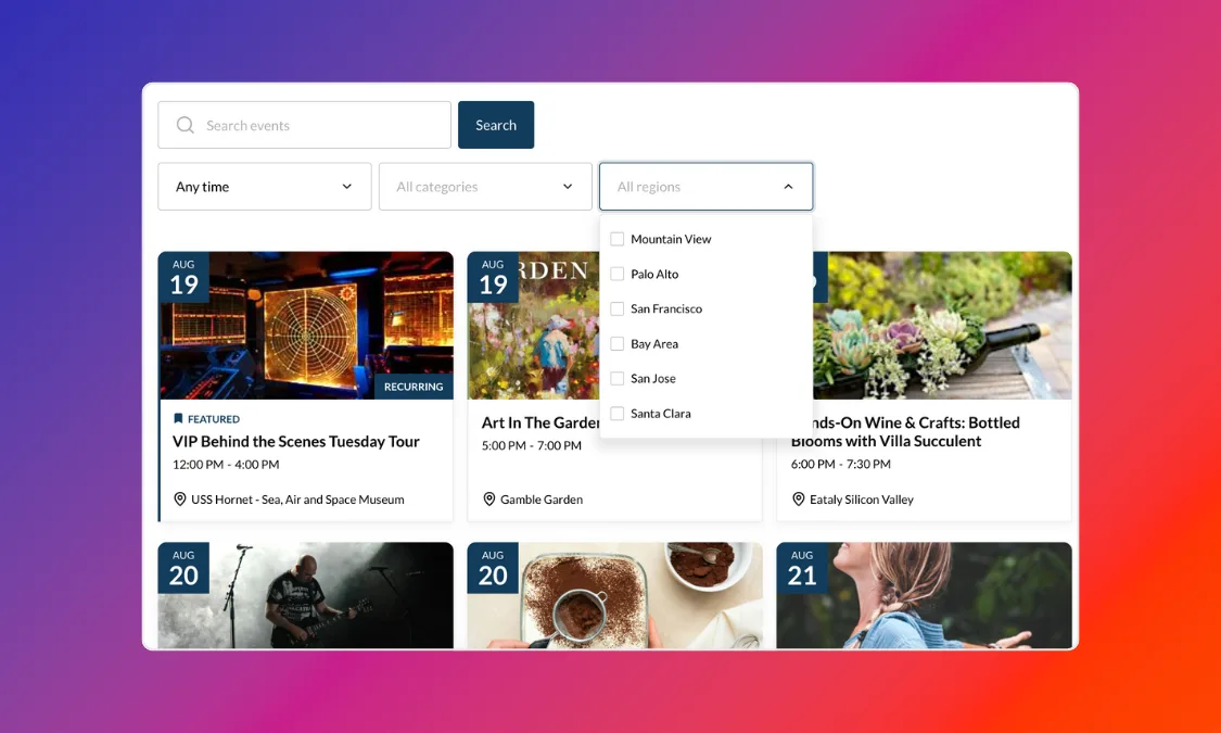 Automate event discovery, approval and publishing and turn your website into the go-to hub for community events.