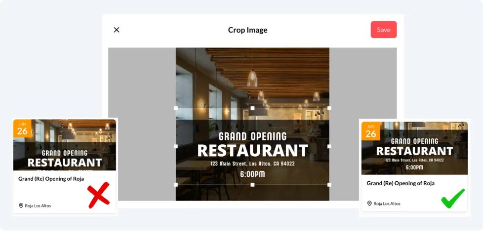 Keep your calendar clean and consistent with new built-in cropping tools. Quickly adjust image framing to maintain a polished, professional look — no outside editing tools required.